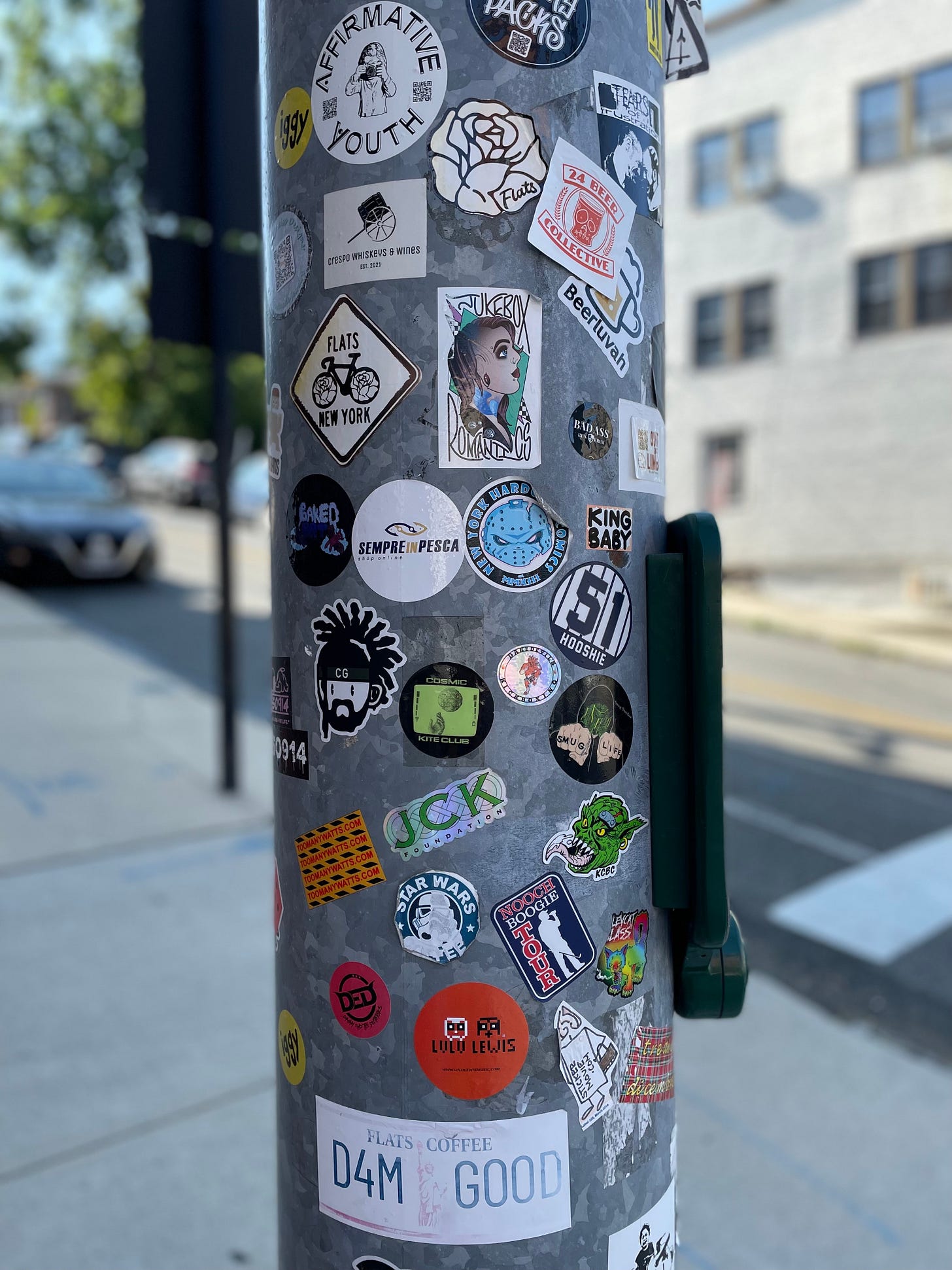 Some consider adhesive art vandalism or trash, but I love gazing at all the variety plastered around the streets.